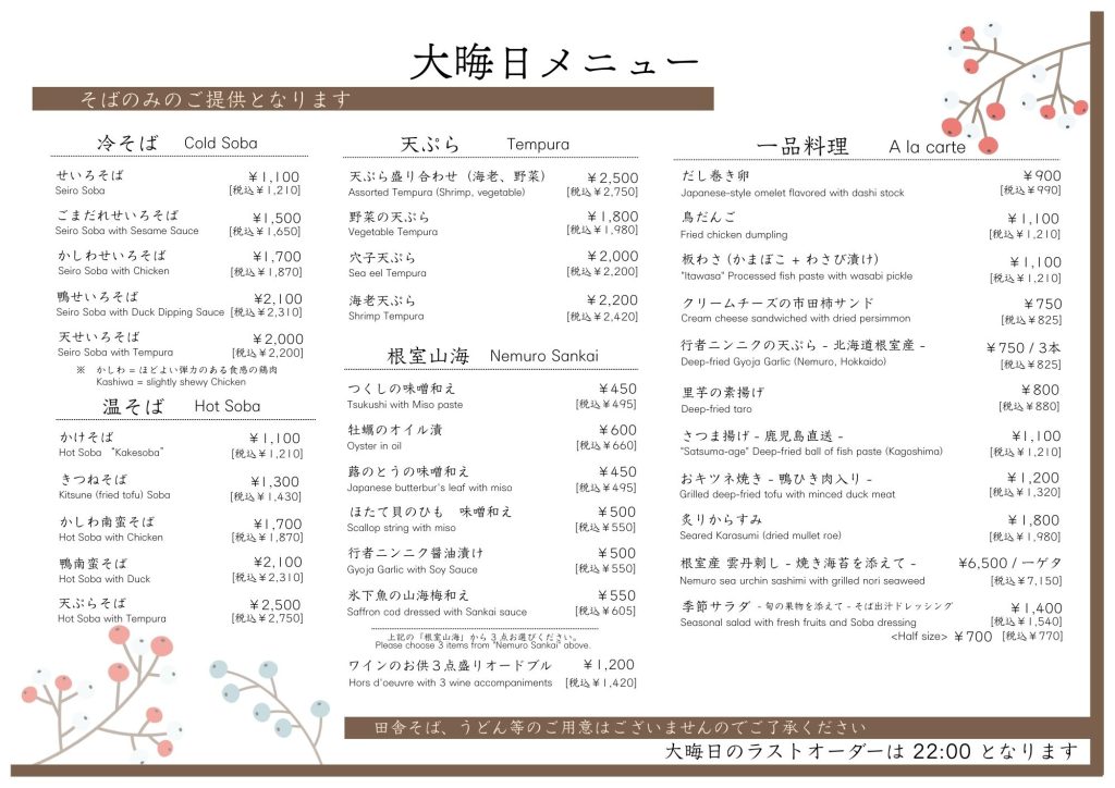 是非とも一度お立ち寄りいただき、珠玉の蕎麦割烹をお楽しみください。